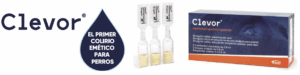 CLEVOR® es el primer colirio emético para perros y se presenta en un estuche de cartón que contiene 3 pipetas de 1 solo uso (1 pipeta por paciente).