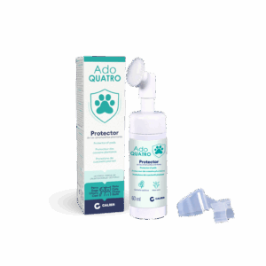 Formulado con aloe vera y centella asiática, AdoQUATRO previene la irritación de las almohadillas, aumenta su resistencia al roce y también actúa como regenerador en el caso de estar secas y agrietadas. Su modo de aplicación es directamente sobre las almohadillas cubriendo toda la superficie con una capa uniforme. Se recomienda que el animal no se lama la zona tratada en los minutos posteriores a la aplicación.