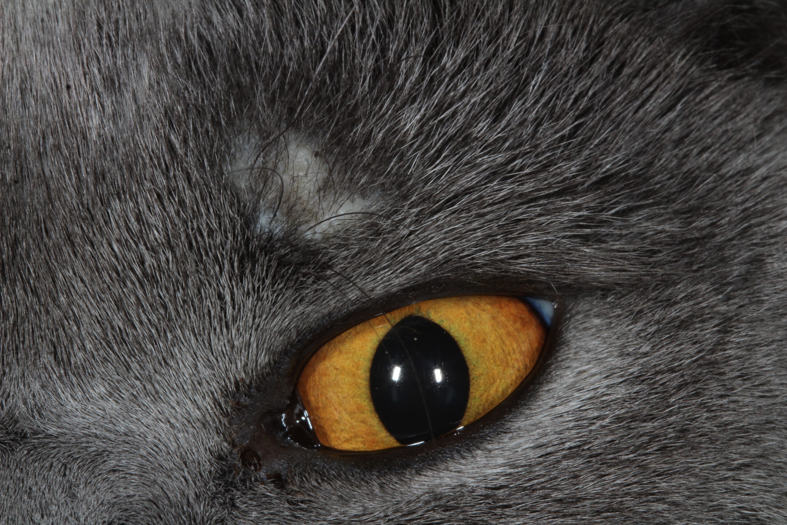 British Shorthair, hembra esterilizada de 1 año. Presenta pérdida de pelo progresiva dorsal en el ojo. Los tutores reportan que de forma muy esporádica se frota contra objetos pero que, aparentemente, no presenta prurito. Gata indoor sin contacto con otros animales correctamente desparasitada con pipetas (selamentina-sarolaner). En consulta,